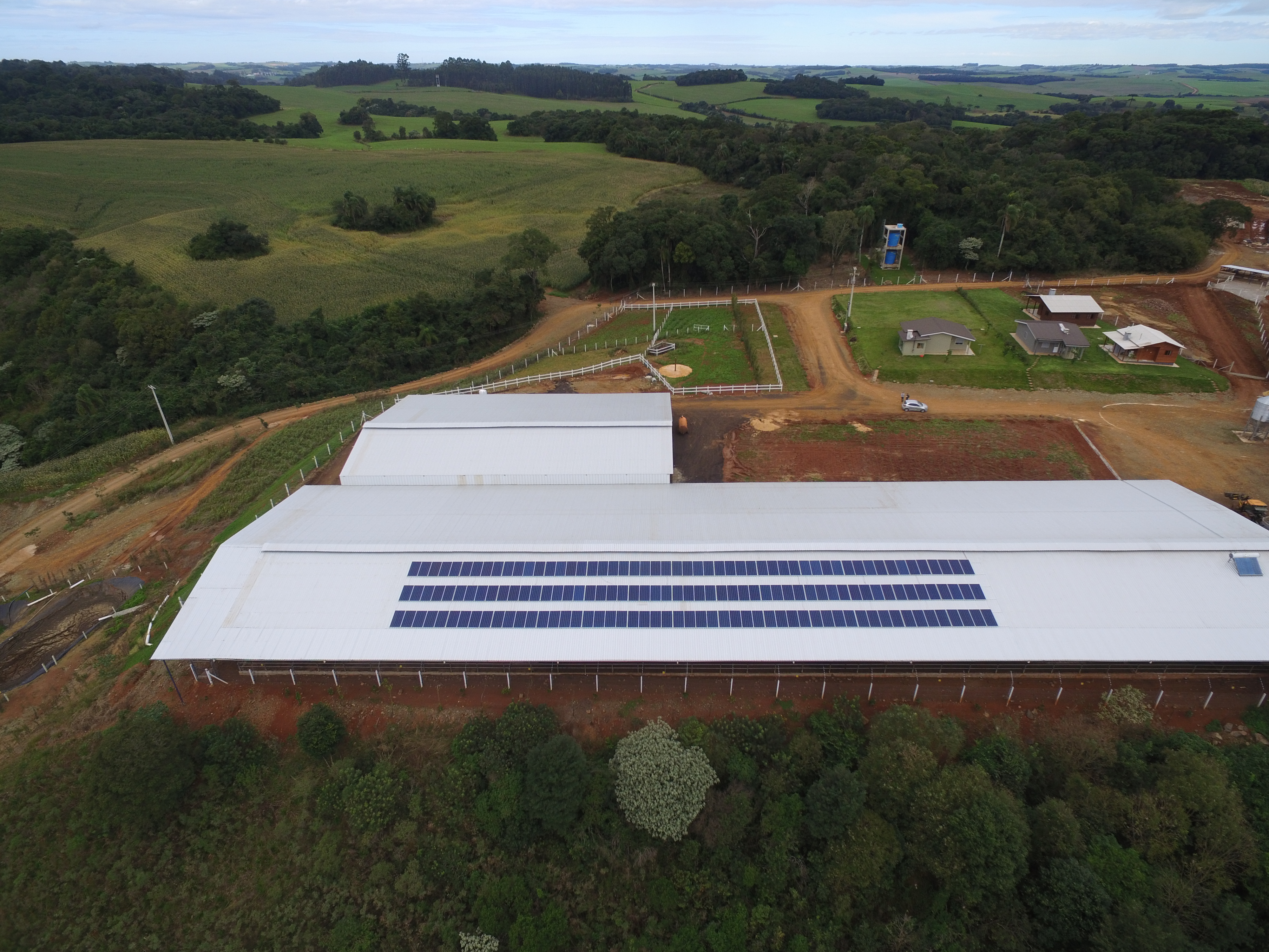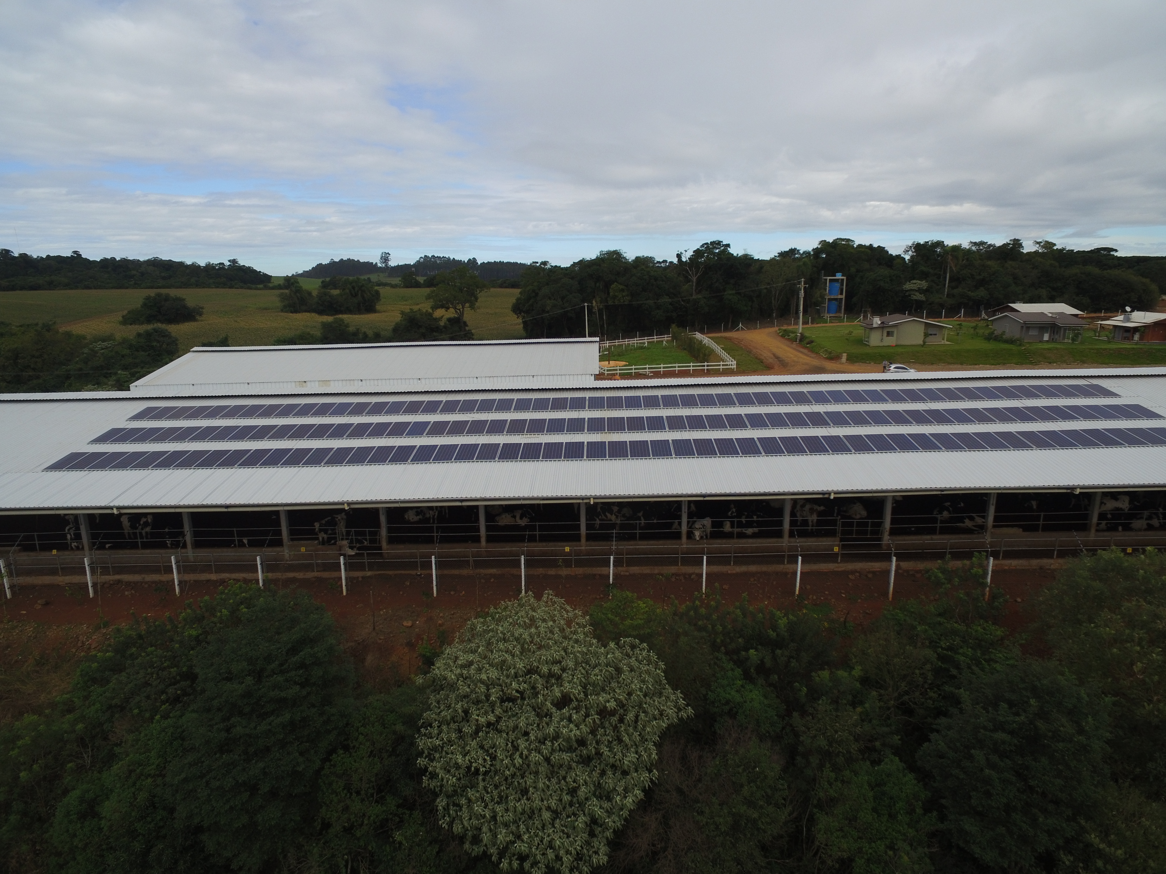 Sistema Fotovoltaico instalado na cidade de Erechim/RS, para atender Pecuária de leite. O investimento de energia solar fotovoltaica para este agronegócio irá trazer uma economia anual de aproximadamente R$ 58.000,00.